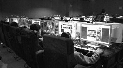 距離教學區(qū)不到10米的另一塊區(qū)域,大概有200多臺電腦,顯示器的尺寸明顯比教學用的大,而且基本上座無虛席,80%的學生在玩網(wǎng)絡游戲。不少學生在玩游戲的時候大聲吵鬧,沉溺于游戲中的廝殺,有的學生一邊抽煙一邊上網(wǎng),整個區(qū)域的空氣很差。