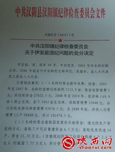 對于長嶺村支書伊發(fā)能涉嫌種種劣跡,漢陽鎮(zhèn)紀檢委書記夏光瑞說:去年4月,長嶺村村民舉報村支書伊發(fā)能涉嫌貪腐,6月份,鎮(zhèn)紀檢委立案調(diào)查,于9月24日在長嶺村村委會召開了黨員群眾大會宣布、對村支書伊發(fā)能處以“黨內(nèi)嚴重警告”,對村委會全體成員進行集體警示訓誡。
