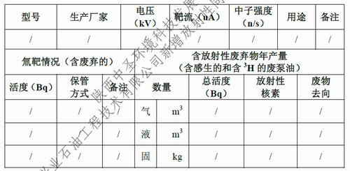 注: 1.密封源要注明并說(shuō)明源強(qiáng)(Bq);欄2中放射性活度是指核素年使用量(Bq/a)。
