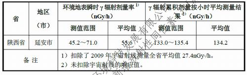 公司開展的石油測(cè)井項(xiàng)目為流動(dòng)式作業(yè),不在某一場(chǎng)所長(zhǎng)期作業(yè)。主要作業(yè)區(qū)域?yàn)殛兾骶硟?nèi),因此輻射環(huán)境現(xiàn)狀以作業(yè)地輻射環(huán)境質(zhì)量監(jiān)測(cè)年度數(shù)據(jù)為準(zhǔn)。根據(jù)《2011年中國(guó)輻射環(huán)境質(zhì)量報(bào)告》,主要作業(yè)區(qū)域環(huán)境γ輻射劑量率數(shù)據(jù)見(jiàn)表6-1。