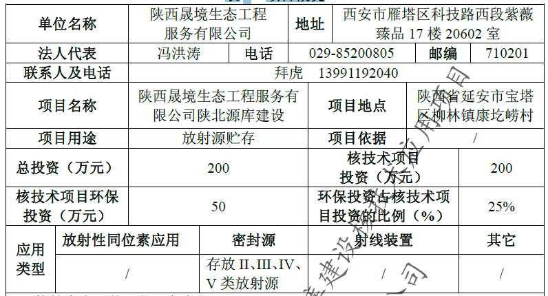 陜西晟境生態(tài)工程服務(wù)有限公司陜北源庫(kù)建設(shè)核技術(shù)應(yīng)用項(xiàng)目公示