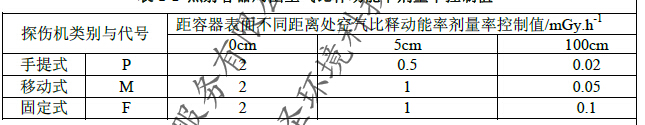 表1-1 照射容器周?chē)諝獗柔寗?dòng)能率劑量率控制值