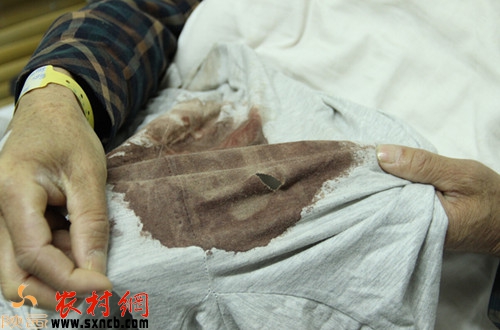 “我們只是來要工錢,開發(fā)商卻把我捅了。”姚銀貴回憶1月14日發(fā)生的事:我是2012年2月份到寧強縣大安鎮(zhèn)龍泉村,在寧強縣泛珠泉飲用水廠這里干的活,我干的活比較雜,代班,看場子,做瓦工,每個月也就6000多元錢,但是工資問題一直到現(xiàn)在都沒有給我解決,我去找過胡成德,他說開發(fā)商也沒給他錢,他也沒錢給我們發(fā)工資。2014年10月,我還找過寧強縣政府,回到家就被開發(fā)商劉明派的人給堵到家里面,不讓我出門。2015年1月5日,我又去找縣政府,還是沒有給我們解決工資問題,實在是沒辦法了,1月14日,我們十幾個農(nóng)民工就把水廠的門給堵了,當時水廠的保安就報了警,大安鎮(zhèn)派出所的民警就來了,最后開發(fā)商劉明也來了,但是她說我們沒資格問她要錢。到了1點多,我就聽見有人喊:“捅人了”,我就去看,姓關的保安就捅了我一刀,當時我覺得很痛,就拉開了衣服,一看就是一條4厘米長的口子,血就往出流。事情發(fā)生后,派出所的民警當場就抓住了那兩個保安,然而開發(fā)商劉明卻說:“老姚你早就該死了,今天還沒有把你弄死。”