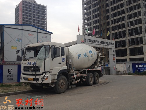 秦漢國(guó)際酒店秦漢財(cái)富中心項(xiàng)目部門前一側(cè)停放的被砸水泥罐車