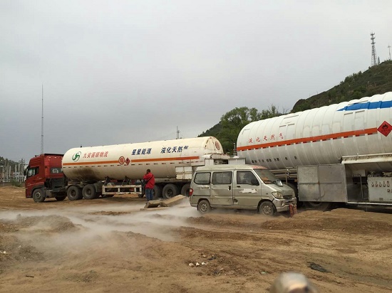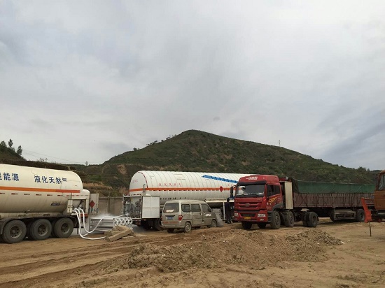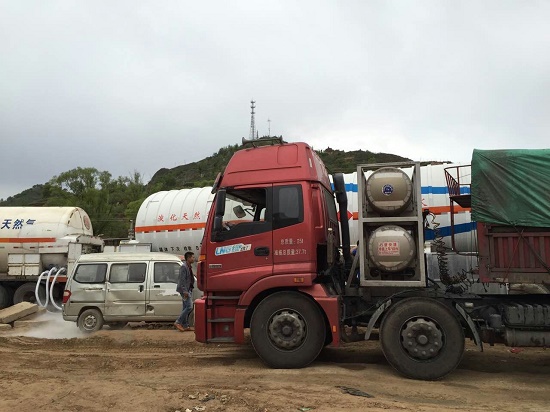 正忙碌地運行著,十幾輛等待加氣的大卡車一字排開!