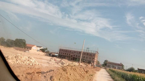 工地前一部分是一座已經(jīng)建筑至第三層的樓房主體,樓房后面是一片已經(jīng)夯好基礎(chǔ)的土質(zhì)層面。