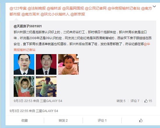 郭興林跟二奶是泡腳房認識好上的,二奶來府谷打工,那時候四個泡腳妹挖,郭興林局長就是這口味,聽說是2008年還是09認識的挖,網(wǎng)友說二奶趙紅艷是陜西渭南蒲城的,西安買下房子跟娃娃在西安住,查下郭局長通話單就甚也知道啦,郭興林后臺厲害了哇,發(fā)的信息都刪了,府谷紀委在哪?