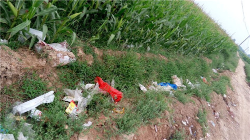 荊姚鎮(zhèn)垃圾侵入路邊的玉米地