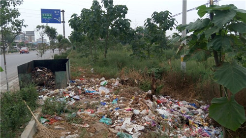蘇坊鎮(zhèn)宣傳標語不遠處的垃圾