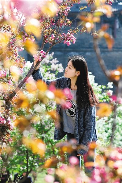 昨日午后,一位女孩在環(huán)城公園欣賞初綻的櫻花。 記者 尚洪濤 攝