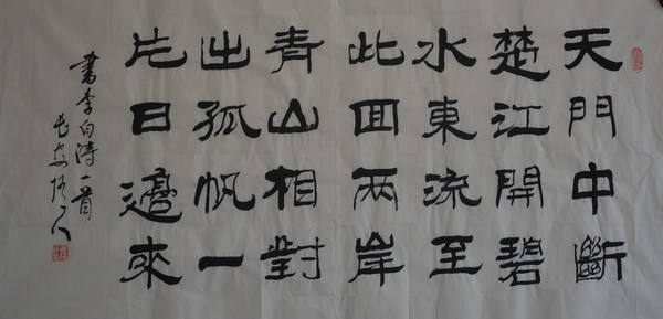 近年來他走創(chuàng)新的路子,創(chuàng)作出一種個性特點突出的新字體,成功地將篆、隸、魏、行諸體巧妙結合,使之具有篆的韻味,隸的沉穩(wěn),魏的莊重,行的活潑,深受人們贊許和歡迎。