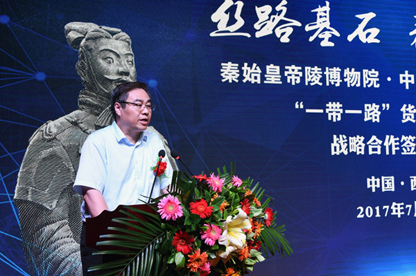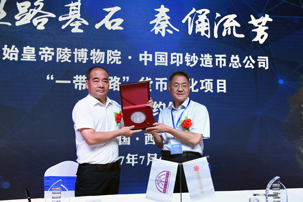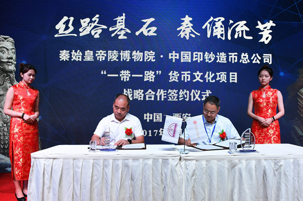 7月6日,秦始皇帝陵博物院與中國印鈔造幣總公司在秦始皇帝陵博物院舉行“一帶一路”貨幣文化項目合作開發(fā)框架協(xié)議簽約儀式。陜西省文物局、秦始皇帝陵博物院、中國印鈔造幣總公司、西安印鈔有限公司等單位領(lǐng)導(dǎo),省內(nèi)外文化、文物、收藏界知名人士120多人出席。
