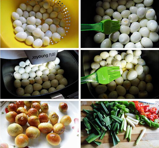 2、鵪鶉蛋去皮后一定要搽干水分在刷油
