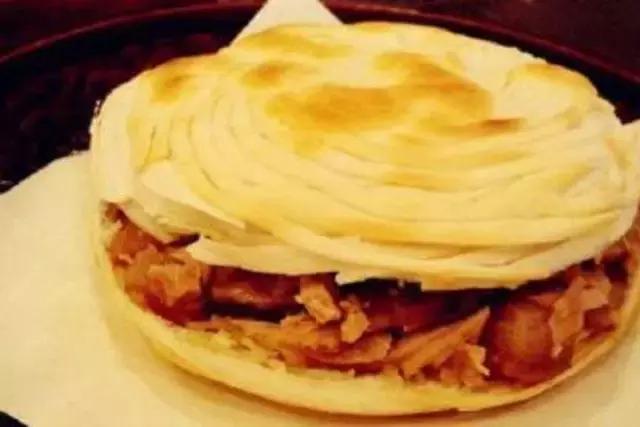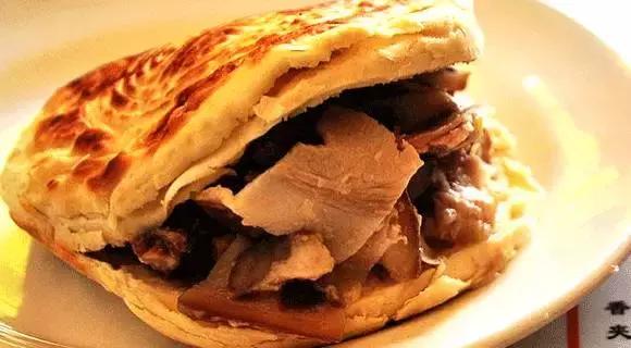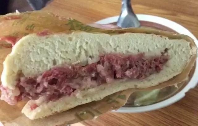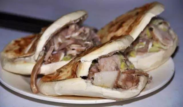 這種肉夾饃一般很少人知道,以三角鍋盔夾白條冷肉為主,據(jù)說(shuō)是著名書(shū)法家于右任當(dāng)年喜歡的,產(chǎn)于咸陽(yáng)三原西關(guān),起源與民國(guó)期間。