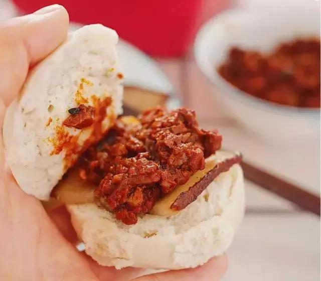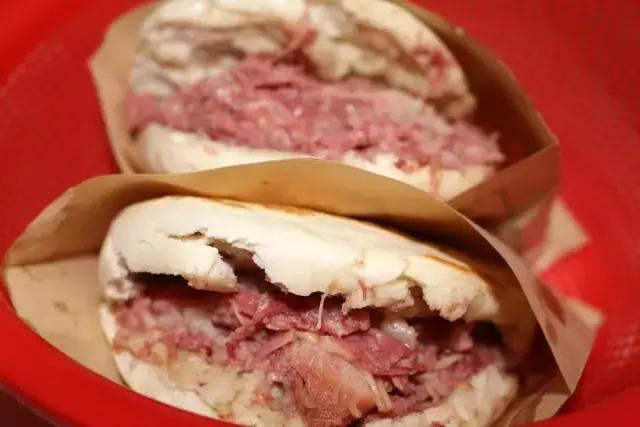 與臘牛肉夾饃不同,選料精細(xì),火功到家,夾在松脆百吉餅里的牛肉,色澤紅潤(rùn),氣味芬芳,肉質(zhì)軟糯,糜而不爛,香辣撲鼻,入口即化的獨(dú)特風(fēng)味。