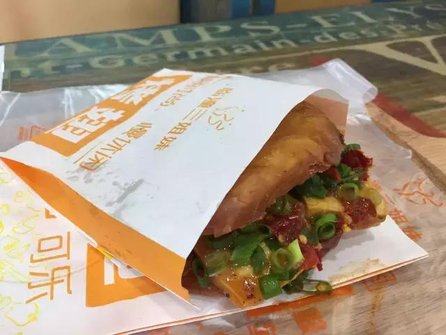 風(fēng)格較以上幾種截然不同,有點(diǎn)南方“舶來(lái)品”的味道在里面。有紅燒肉、有香腸,當(dāng)然你也可以在里面夾點(diǎn)涼菜什么的,而且這個(gè)用的是荷葉餅哦。