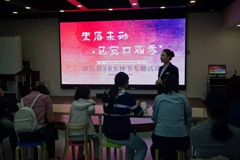 3月8日,婦女節(jié)當日專門為成人舉辦了專題活動——“朱唇未動,已覺口脂香”。本次活動是面向對古代妝容感興趣的成年女性觀眾,邀請成年女性參觀“陜西古代文明”展覽,從出土的女傭身上看古代女性的妝容發(fā)展。