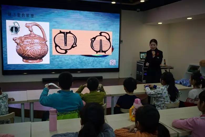 “陜博星課堂——十八國寶系列之神奇的倒注壺”課程結合“陜西古代文明”展覽,讓孩子們通過參觀展覽,了解中國陶瓷發(fā)展史,領略古人制作器物的奇思妙想。