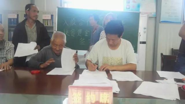 潼關(guān)縣桐峪鎮(zhèn)三泰村組織貧困戶舉行金融扶貧政策解讀暨托管分紅簽字儀式