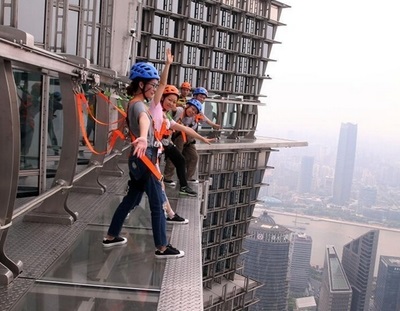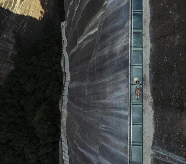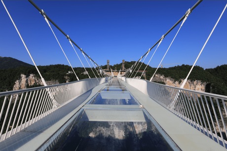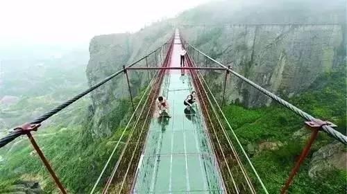 【湖南張家界大峽谷玻璃棧道】這個號稱世界最長、最高的全透明玻璃橋,它主跨430米,橋面長375米,寬6米,橋面距谷底相對高度約300米,橋面全部采用透明玻璃鋪設,整個工程無鋼筋混凝土橋墩,被CNN列入世界11座最壯觀的橋之一。