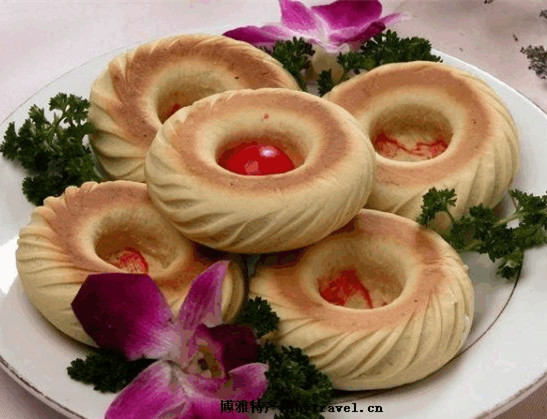 昔日慈禧避難時的貢品,后流傳于民間,代代興旺。用面粉、核桃焙制而成,小如瓷蓋,色金黃,入口香酥,放置累日逾旬色味如初。 最著名的要數(shù)王家核桃饃,此饃小如瓷盞,入口香酥,吃完之后回味無窮。