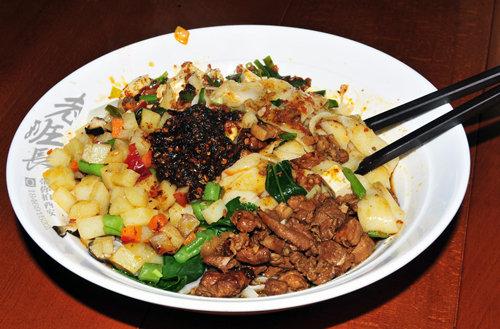 澄城手撕面用手工撕制而成故名手撕面。用手撕和用刀切出來的面在味道上有所不同。撕的面具有彈性,爽滑有咬勁,煮熟的面呈微透明色澤鮮亮。手撕面寬窄粗細(xì)都可以自己掌握,手撕面可做成牛肉面、麻辣面、打鹵面、炸醬面、涼拌面和各類炒面數(shù)十種作法。這個面你吃過木有?