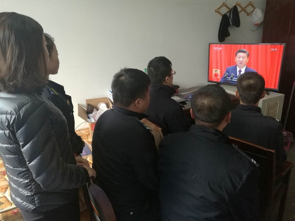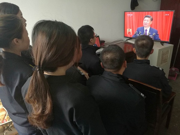 陜西延安黃陵站派出所組織全體干部民警收看了十九大開幕會