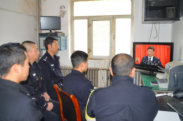 觀看完后,所長劉殿華組織全體干警召開座談會,要求大家在今后的工作中要以總書記的講話為動力,牢固樹立“四個意識”,深刻認識、準確把握報告的基本內(nèi)容和主要觀點,確保十九大期間各項公安保衛(wèi)工作落到實處。