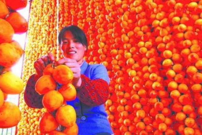 據(jù)了解,富平縣曹村鎮(zhèn)、莊里鎮(zhèn)是富平乃至全國的柿子優(yōu)生區(qū)。為發(fā)揮產(chǎn)業(yè)扶貧的造血功能,曹村鎮(zhèn)創(chuàng)新發(fā)展模式,采取“政府引導(dǎo)、企業(yè)主導(dǎo)、農(nóng)戶入股”方式,組建了集種植、加工、銷售為一體的農(nóng)民專業(yè)合作社,建設(shè)千畝柿子種植加工基地,統(tǒng)一管理、分片負責(zé)、責(zé)任到戶。貧困戶以柿子園免費入股,無勞動能力的由合作社統(tǒng)一托管。合作社注冊了“大福”、“柿子紅了”等品牌商標,統(tǒng)一收購,統(tǒng)一檢測,統(tǒng)一包裝,為商品走向高端市場奠定了基礎(chǔ)。