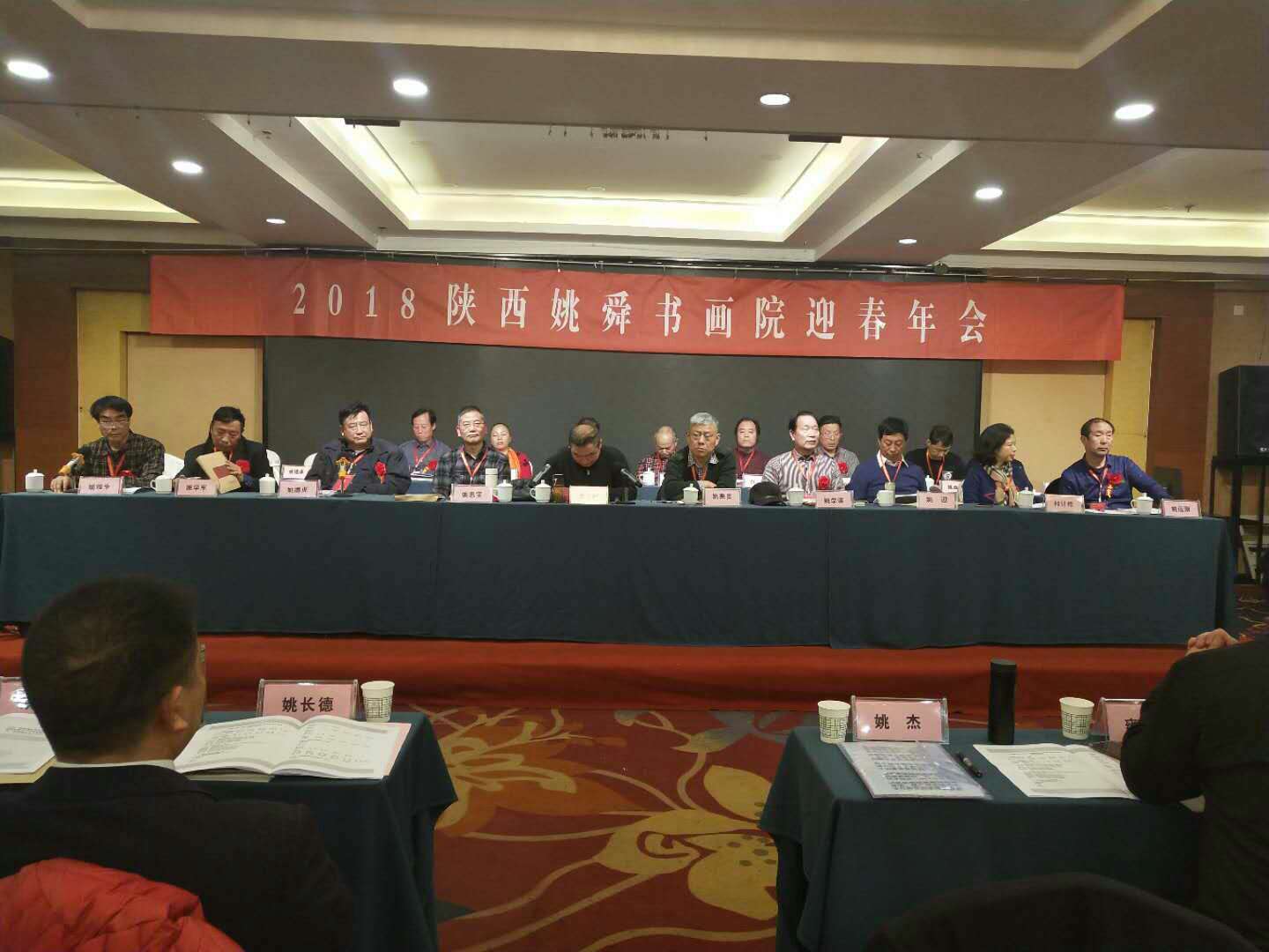 來自河南、安徽、貴州、甘肅等地的姚氏組織、文化研究機(jī)構(gòu)負(fù)責(zé)人,省內(nèi)特邀書畫家及陜西姚舜書畫院、陜西姚氏商會(huì)、陜西姚舜文化研究會(huì)、陜西姚氏組織機(jī)構(gòu)監(jiān)事會(huì)成員及各地市部分姚氏宗親代表共計(jì)150名人員參加了“2018陜西姚舜書畫院迎春年會(huì)”開幕式等相關(guān)活動(dòng)。