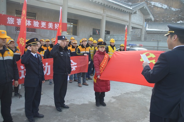 啟動儀式上所長劉萬帶領(lǐng)全體安保成員宣讀2018年春運(yùn)安保誓詞,鼓勵全體安保成員“新年新氣象,要以新的業(yè)績向十九大開局之年獻(xiàn)禮”。圍繞進(jìn)入新時代上級鐵路公安機(jī)關(guān)提出的“建設(shè)交通強(qiáng)國,鐵路現(xiàn)行,鐵警先動”指示精神,劉萬所長要求全體民警、輔警、安檢隊員要主動作為,廣泛開展愛民實(shí)踐活動、立足崗位做貢獻(xiàn)、規(guī)范文明執(zhí)法、嚴(yán)肅警紀(jì)警規(guī),以良好的精神風(fēng)貌和狀態(tài)向過往旅客展示鐵路公安進(jìn)入新時代新形象,業(yè)務(wù)民警李文軍、楊松關(guān)向過往旅客宣傳了禁止和限制攜帶危險品種類及各種防盜、防騙技巧,安檢隊員通過文藝活動豐富了旅客行程。