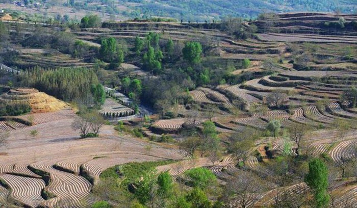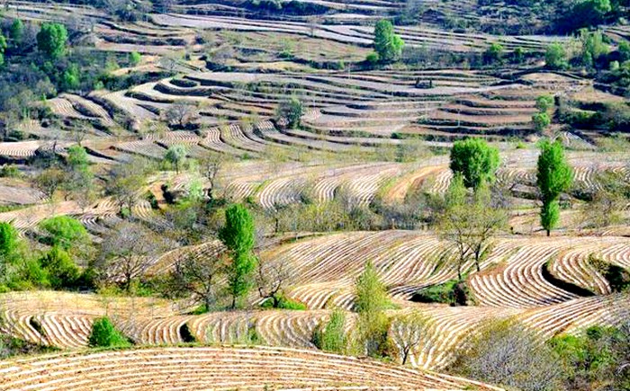 早春四月,山城宜君草長鶯飛、花紅柳綠。有個世外桃源般的地方盛滿了跳躍的春色,那就是素有“上帝指紋”美譽的哭泉旱作梯田。