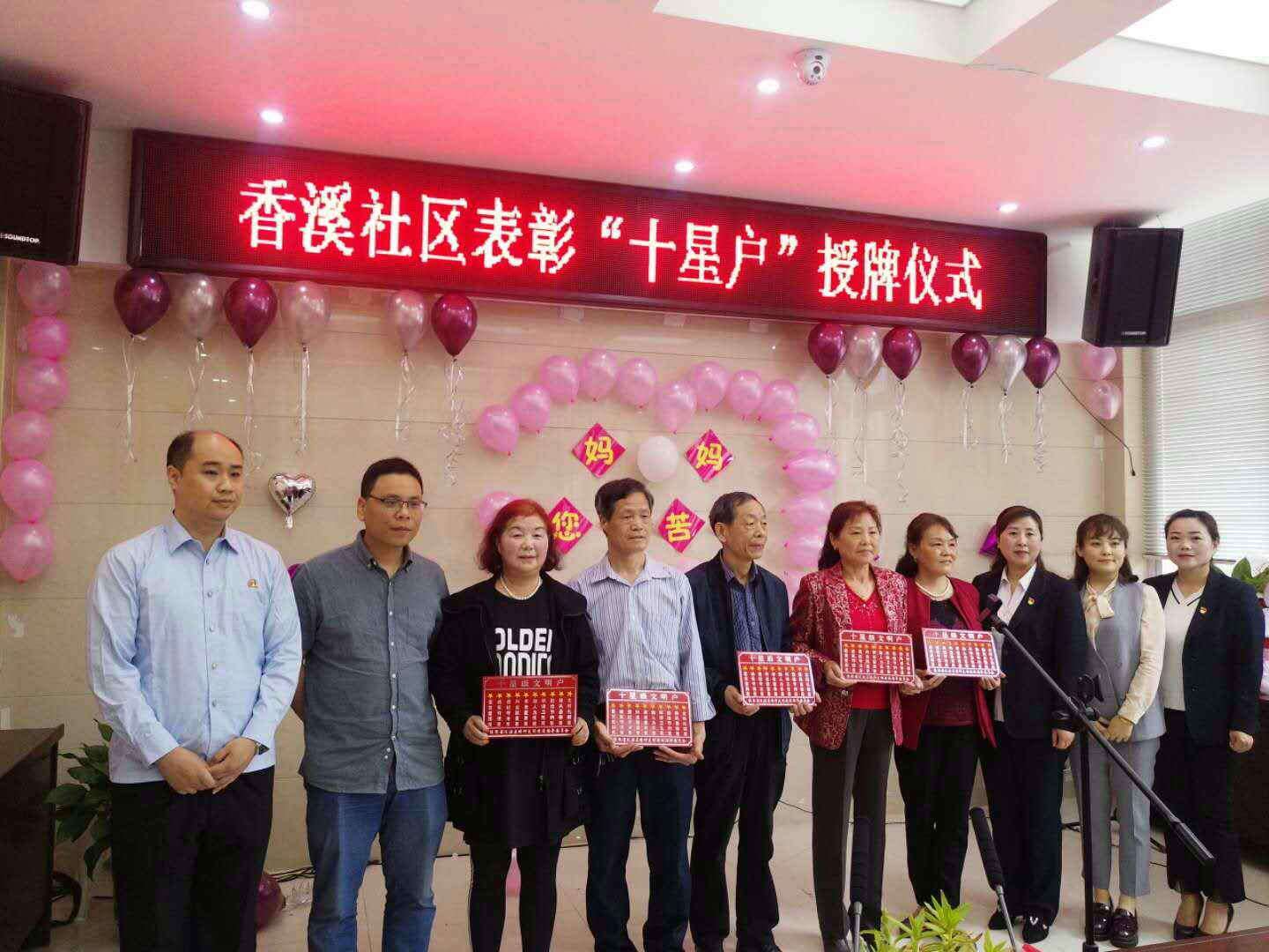 評議結束后, 中級法院,市委政研室,老干部活動中心等單位代表為三位正面典型及香溪社區(qū)通過前期走訪調查,群眾推薦等方式推薦出的10戶十星級文明戶頒發(fā)了榮譽證書和文明戶榮譽牌并鼓勵他們再接再厲,繼續(xù)做好表率。