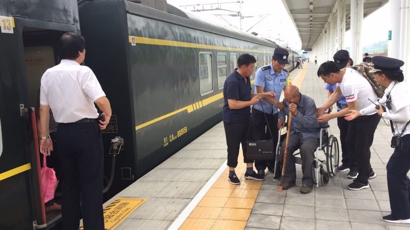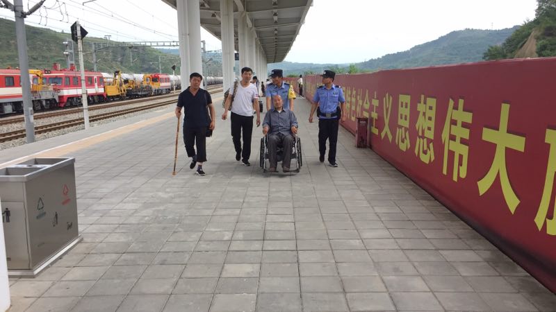 本網(wǎng)訊(通訊員:孟亮)2018年8月12日,延安市黃陵縣阿黨鎮(zhèn)84歲的劉秉義老人欲購(gòu)買黃陵南站到河北石家莊的K214火車車票看病,因無法工作人員提供身份證號(hào)在黃陵南站售票廳急的淚流滿面,在此執(zhí)勤的延安鐵路公安處黃陵站派出所民警楊松關(guān)及時(shí)趕到,為老人及時(shí)辦理了臨時(shí)乘車身份證明并開辟了綠色通道將老人及時(shí)送上火車,受到周圍群眾的一致稱贊。