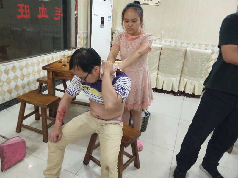 經(jīng)調(diào)查,被砍男子名叫陳某波,系重慶川菜魚莊的服務(wù)員,與李某森并無任何矛盾糾紛,目前正在黃陵縣友誼醫(yī)院救治。據(jù)主治醫(yī)生劉某介紹陳某波背部刀傷1處,長約20CM,深度達(dá)肌層,后頸部刀傷1處,長約8CM,深度皮下,目前無生命危險。