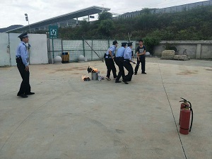 火災(zāi)撲救組手持滅火器臨危不懼,搖動、打開保險、按壓一連串動作早已爛熟于心,恐怖分子的縱火點迅速被撲滅。