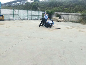 醫(yī)療救助組身穿防護(hù)服抬著擔(dān)架,要在最短的時間將受傷人員送上救護(hù)車,既要搶時間又不能使擔(dān)架過于顛簸,各各注意力集中,迅速完成了送救任務(wù)。