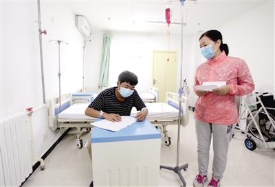 “在病房里考試?”病房外站有病人,想瞧瞧醫(yī)院里的考試是啥樣子。得知這里有學生要考試,護士熱心幫忙,專門為特殊考試整理出來空病房,作為這次考試的愛心考場。