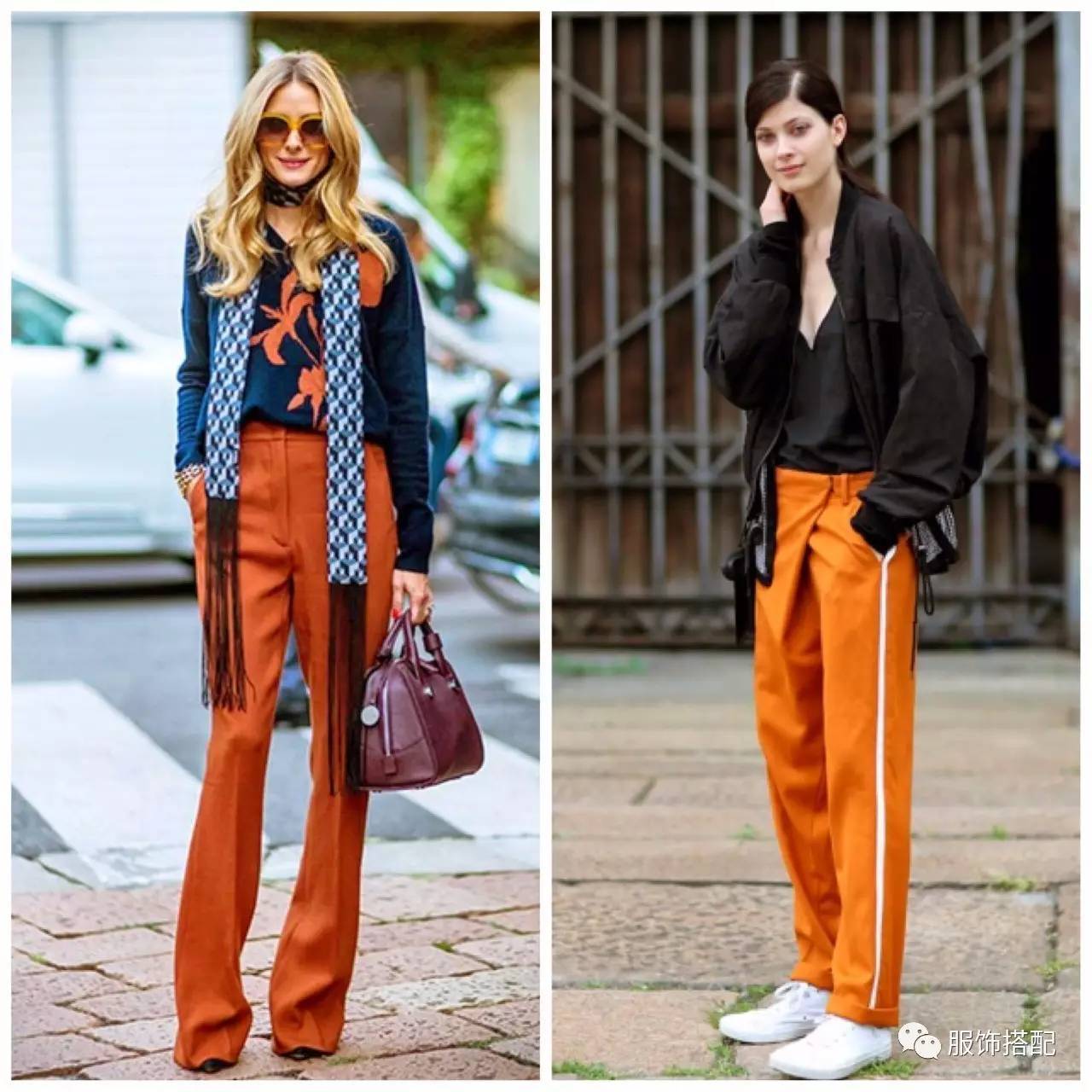 秋楓褐的闊腿褲、喇叭褲復古又文藝,建議搭配黑色、深藍色上衣。